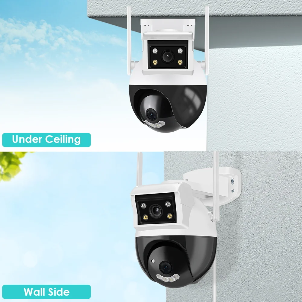 4MP Dual Lens 360 Degree Indoor / Outdoor IP WIFI PTZ 10x zoom High definition night vision intelligent Smart CCTV Surveillance Camera.