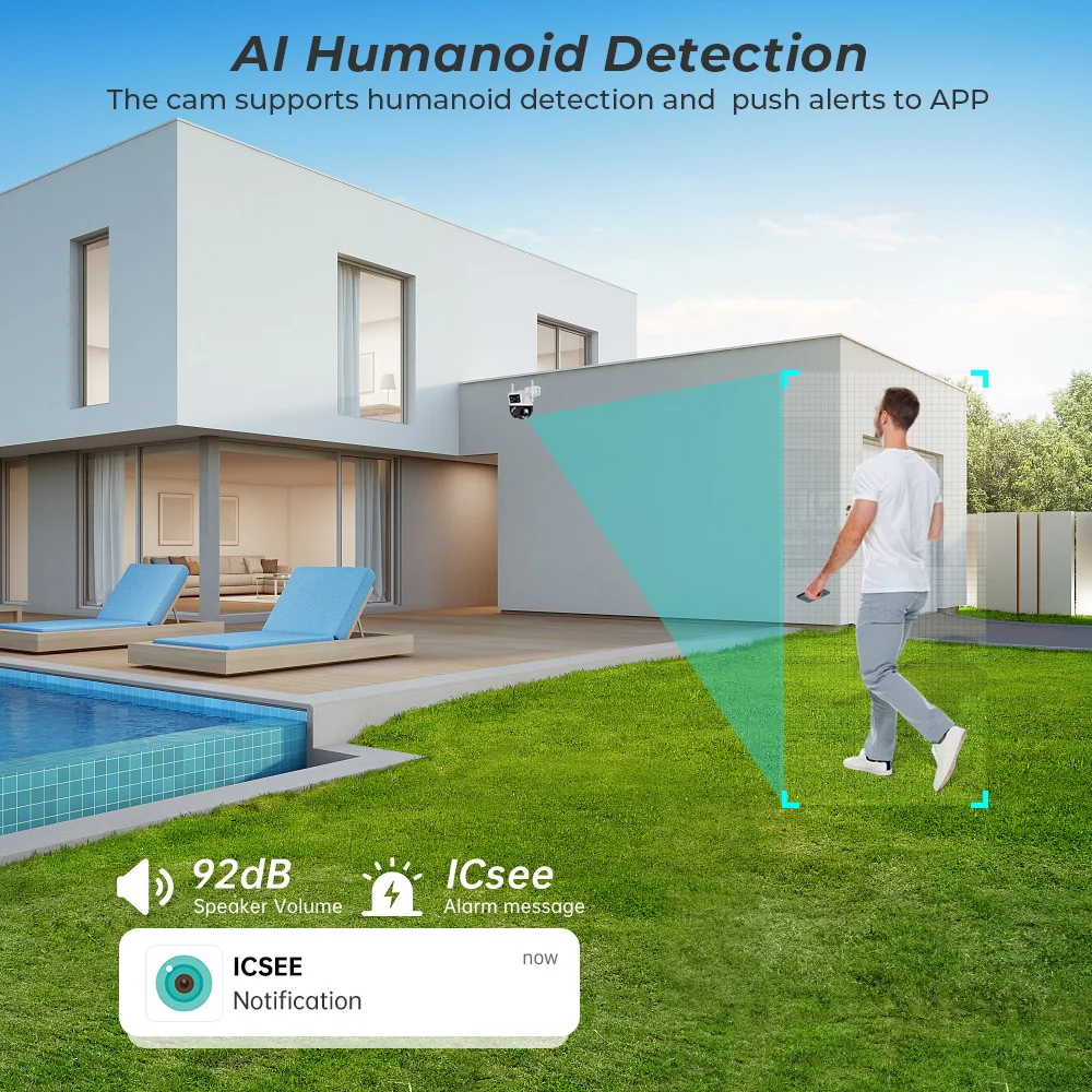 Quickly finds human targets and immediately sends App notifications to your phone so you can see what’s happening anywhere.