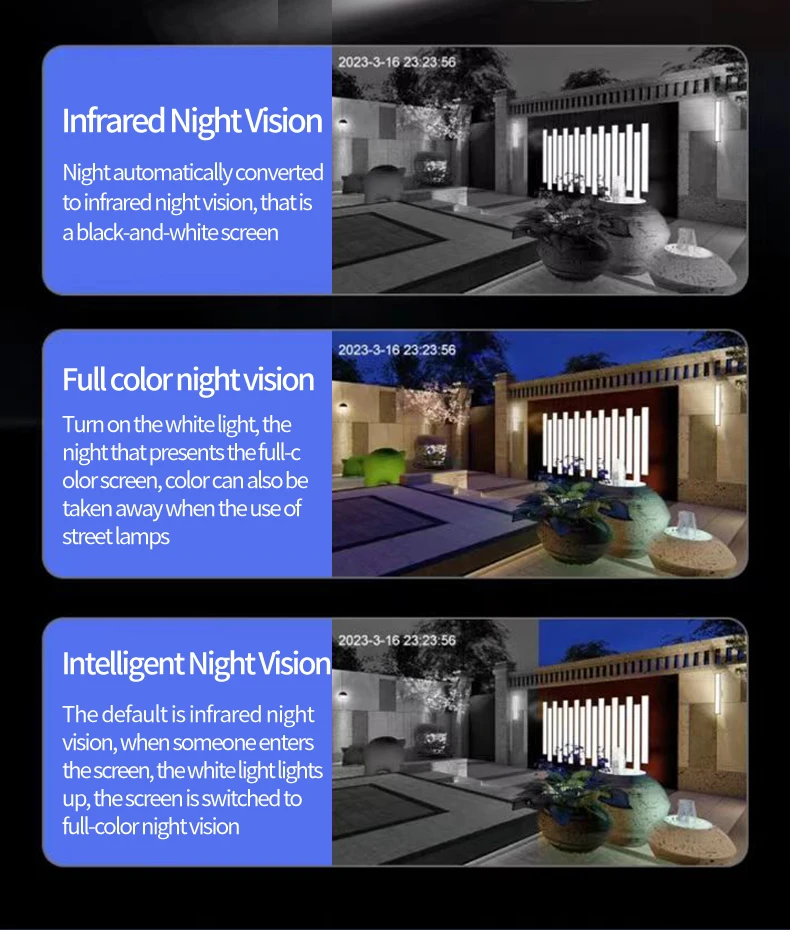 Built -in White LED and Infrared LED, you can choose color night vision or infrared black and white night vision.