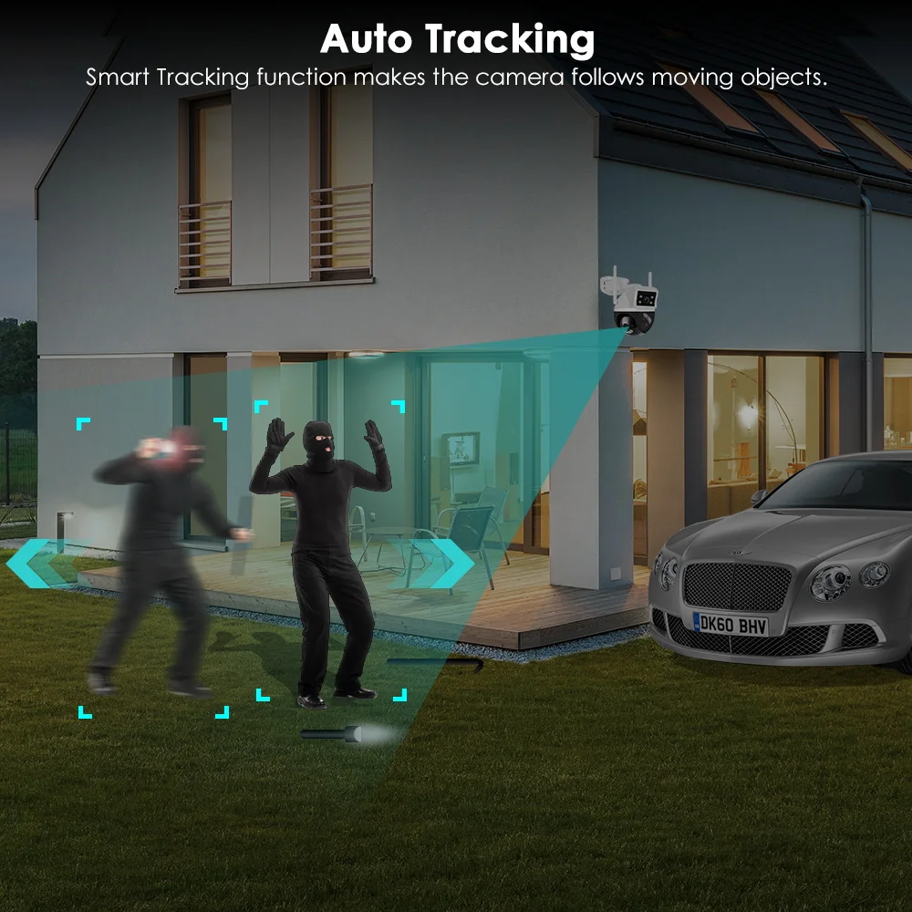 When someone passes through the protected area, the camera will detect the person’s movement and follow the person.