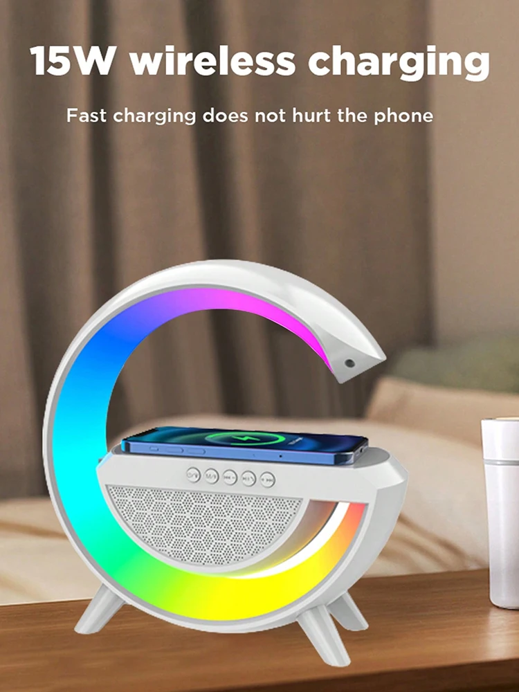 2 reviews for Desktop Atmosphere Night Light G Shape Bluetooth Speaker Wireless Charger FM Radio Stereo Surround Music Box – White