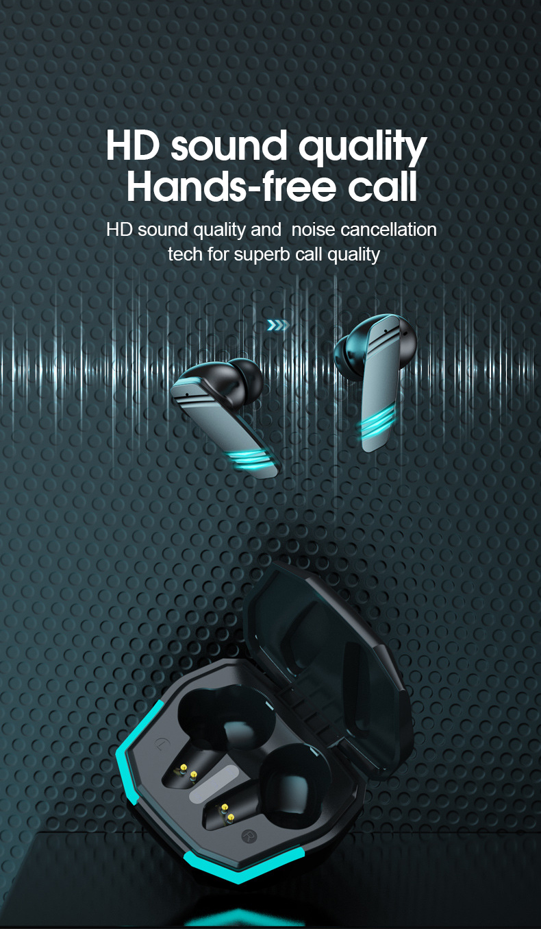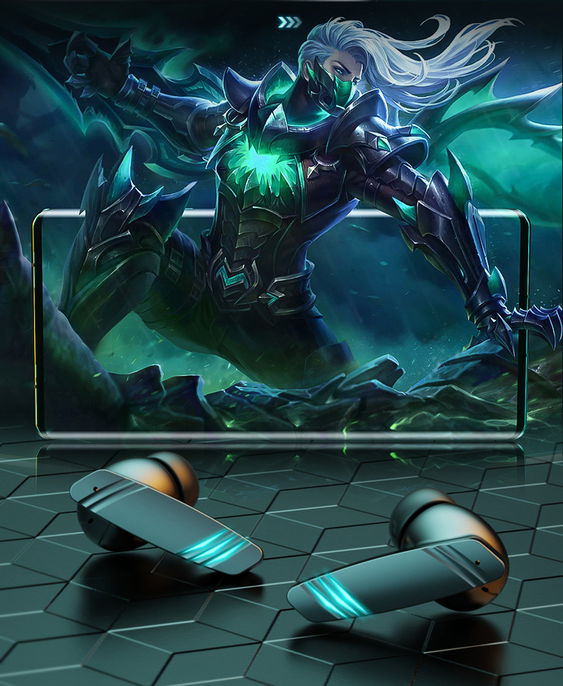 - True Wireless Headphones Bluetooth Gaming Earphone Noise Canceling No Delay In-ear Headset with Microphone for Cell Phone Ipad