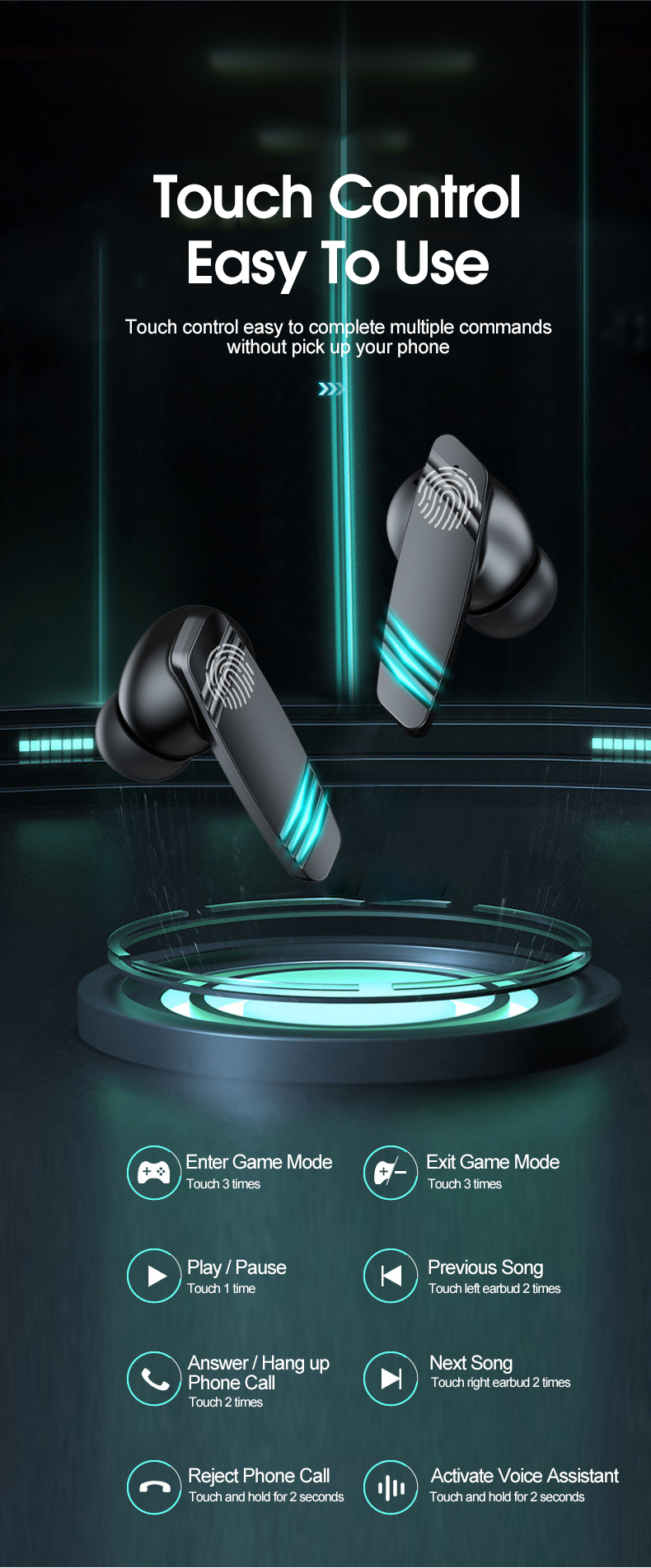 1. Gaming wireless Bluetooth 5.0 headset, low power consumption, low latency.